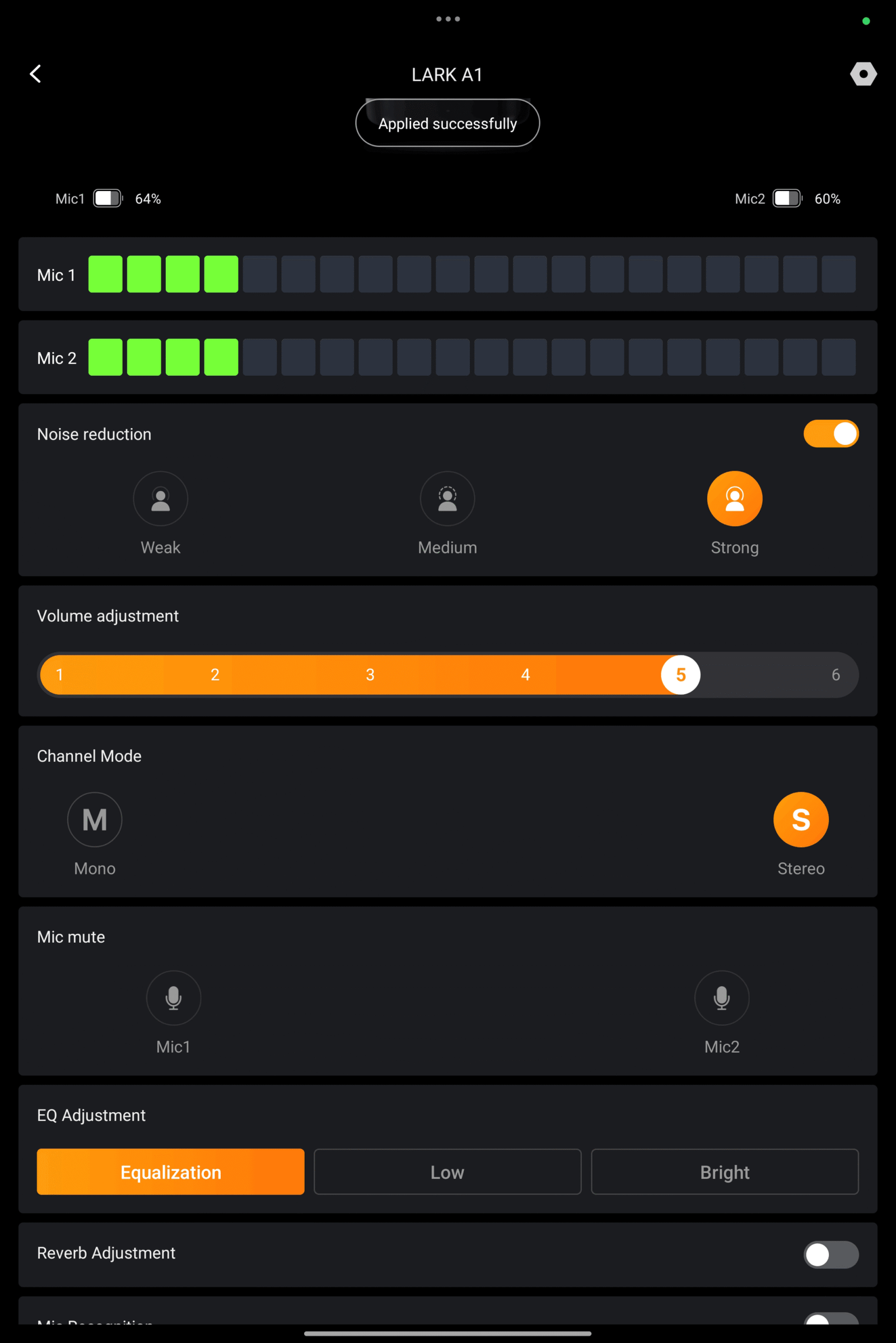 App gives you real-time audio strength indication, noise cancellation, working mode, equalizer and others. The great thing about this configurator is that the settings are saved on-device all the time. That means, the settings will be retained even when you connect the microphones to a new device or PC, or even after turning off. This means, I can continue using all of the features of the microphones in my Windows PC. I only need to use the app whenever I want to change something. Well done Hollyland.